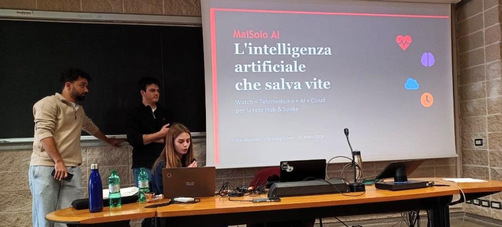 Developed by Gabriele Crociani, Alessandro Pasetti and Alessia Castagnedi, the project stems from a simple yet profound need: never to leave people alone in their most critical moments. The system integrates a smartwatch and an app for continuous monitoring of vital signs, but its key strength lies in the use of predictive AI. Thanks to the F.A.S.T. protocol and facial recognition, it is able to detect signs of a stroke within seconds. The app also includes emotional support features, such as voice tone analysis to identify situations of vulnerability.