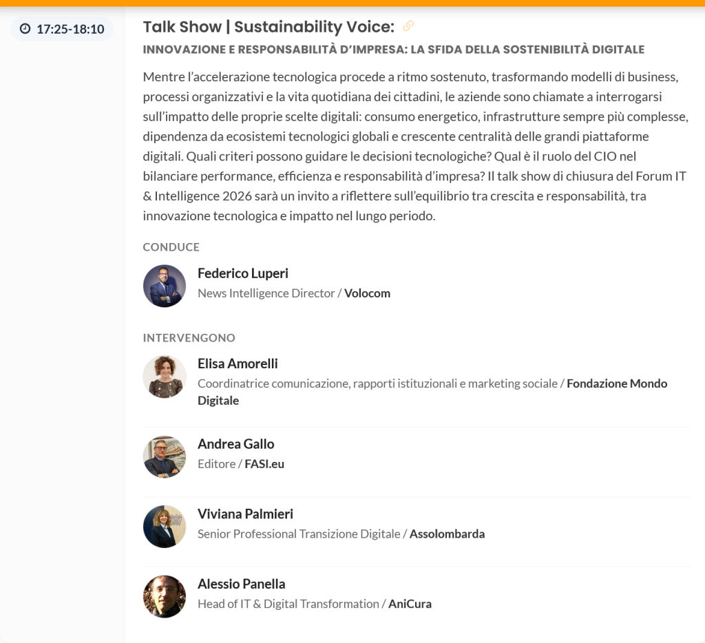 The participation of the Fondazione Mondo Digitale forms part of a broader initiative that links education, innovation and social impact. From this perspective, digital sustainability is not a separate sphere, but a dimension that cuts across skills, organisational models and the ability to govern technologies. Dialogue with businesses, institutions and stakeholders across the country represents a fundamental step: not to pit visions against one another, but to build shared languages and practices capable of steering innovation towards concrete and lasting results.