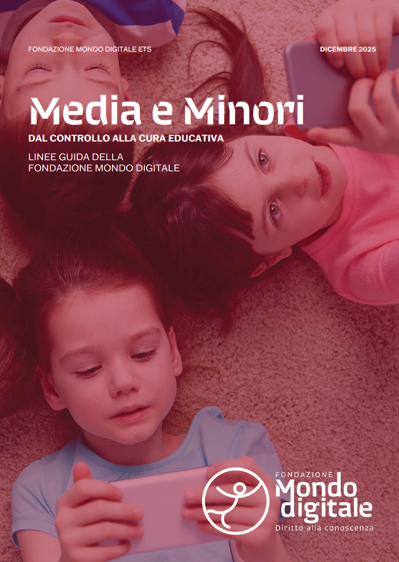 Media e minori. Dal controllo alla cura educativa è il booklet con cui la Fondazione Mondo Digitale propone un cambio di paradigma nel rapporto tra giovani, media digitali e adulti di riferimento. Non un manuale di divieti, ma un quadro educativo, valoriale e operativo per accompagnare bambini e adolescenti nella crescita all’interno dello spazio firtuale, dove dimensione fisica e digitale si intrecciano ogni giorno. Le linee guida nascono dalla convinzione che la tutela dei minori non possa basarsi solo sul controllo o sulla regolazione, ma richieda cura educativa, corresponsabilità e formazione continua di tutta la comunità educante.