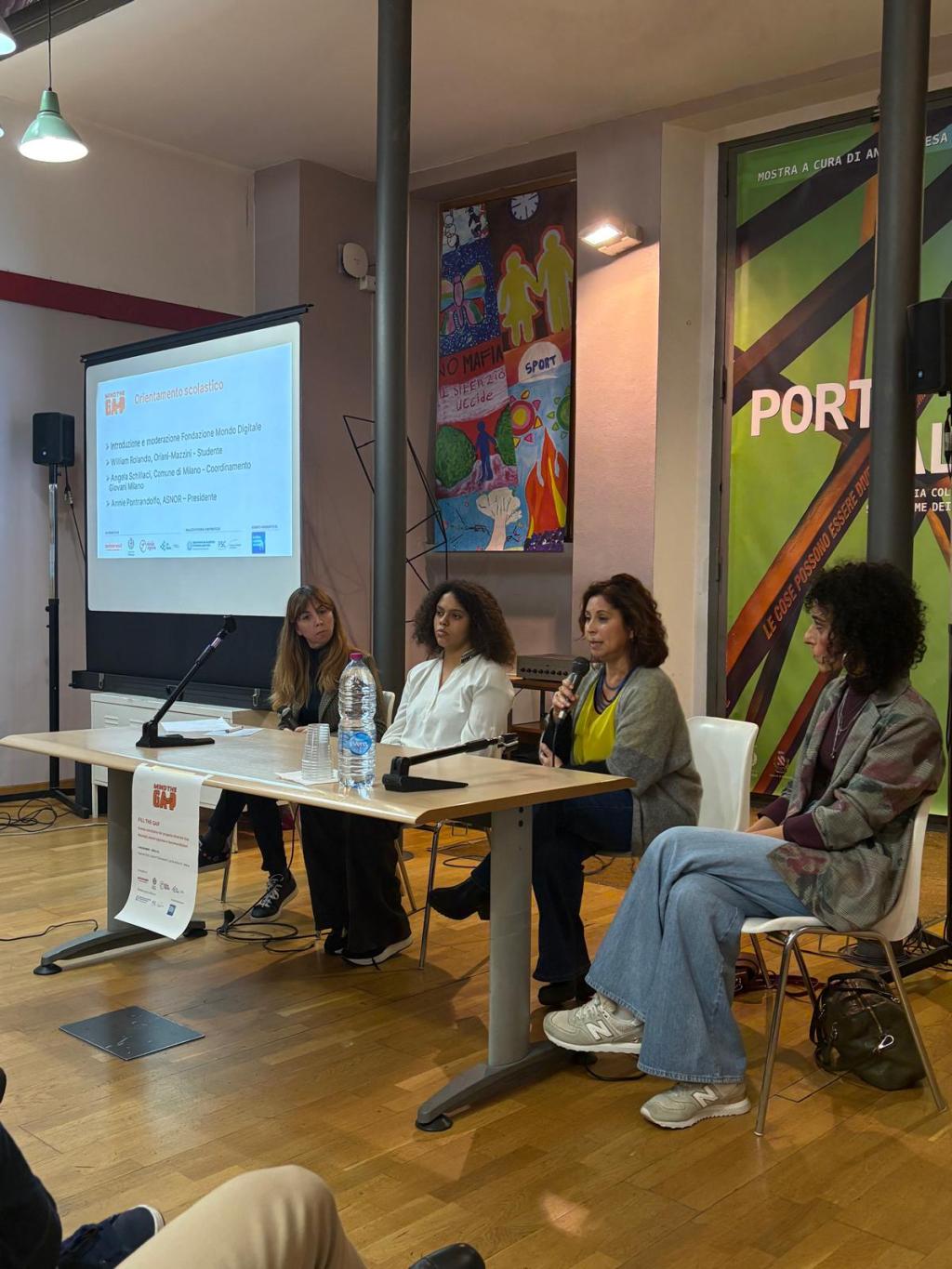 L’evento ha ripercorso le tappe principali del progetto, dando voce ai diversi attori coinvolti, tra cui le istituzioni: tra le presentazioni delle studentesse e degli studenti, la sessione dedicata all’orientamento scolastico ha offerto una riflessione sul valore dell’accompagnamento dei giovani nella costruzione del proprio percorso, con la preziosa testimonianza di Rebecca Crepaldi, studentessa dell’Oriani Mazzini, con l’intervento di Angela Schillaci del Comune di Milano (Coordinamento tecnico metodologico "Giovani Milano" - Unità Promozione Giovanile DP Promozione Giovanile e Transizione Scuola Lavoro, Direzione Lavoro Giovani e Sport) sul modello della Rete orientamento cittadina di Milano e sull’importanza di lavorare in un’ottica di sistema, e Annie Pontrandolfo, presidente di Asnor, con una riflessione sulla domanda di orientamento da parte delle scuole, delle famiglie e dei territori e sul nodo centrale della formazione degli insegnanti per diventare “orientatori” dei giovani.