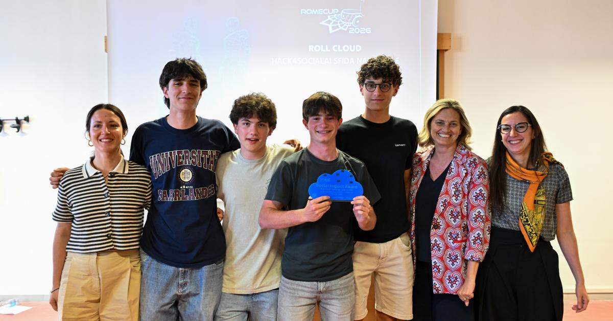 L’evento si è svolto ieri alla Sapienza Università di Roma, nell’ambito della RomeCup 2026, e ha coinvolto team selezionati dalle tappe nazionali del percorso. Studentesse e studenti delle scuole superiori e dell’università hanno lavorato su soluzioni basate sull’uso dell’intelligenza artificiale per affrontare quattro grandi sfide sociali: salute, inclusione, povertà educativa e sostenibilità.