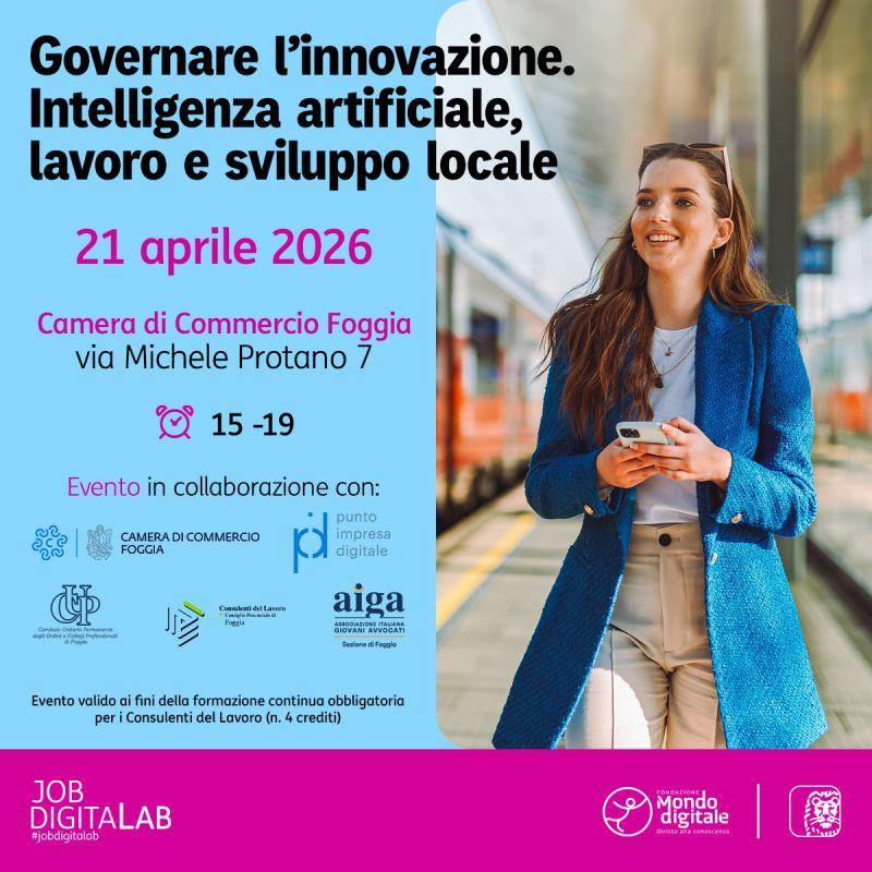 È in questo contesto che Job Digital Lab, il programma di formazione digitale gratuita della Fondazione Mondo Digitale realizzato con ING Italia, arriva a Foggia con una tappa del suo tour territoriale dedicato a imprenditori e professionisti. L’appuntamento è per martedì 21 aprile, dalle 15 alle 19, nella sede della Camera di Commercio di Foggia (via Michele Protano, 7), in collaborazione con il Comitato Unitario delle Professioni (CUP), il Consiglio Provinciale dei Consulenti del Lavoro di Foggia, l’Associazione Italiana Giovani Avvocati (Aiga), sezione di Foggia e l’Ordine degli Ingegneri di Foggia.