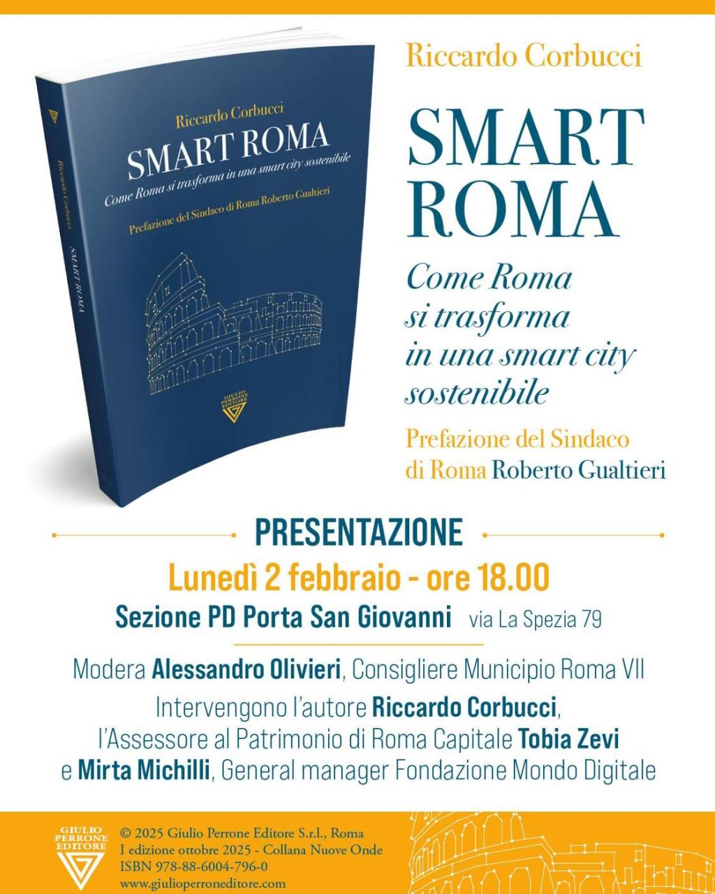 La settimana ospita anche momenti di riflessione pubblica sul rapporto tra innovazione, territori e futuro delle città. In particolare, lunedì 2 febbraio, presso il Municipio VII di Roma, è in programma la presentazione del libro di Riccardo Corbucci Smart Roma. Storie di innovazione, persone e città (Giulio Perrone Editore, 2025). Un’occasione di confronto aperto su come allenare le comunità urbane al cambiamento attraverso educazione, competenze e partecipazione [vedi la notizia Una città che si allena al futuro].