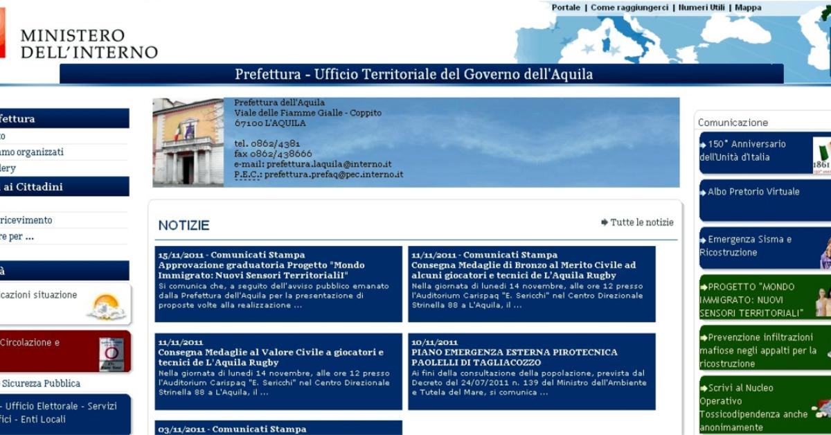 La Prefettura dell'Aquila comunica che, a seguito dell’avviso pubblico emanato per la presentazione di proposte volte alla realizzazione del progetto denominato “Mondo Immigrato: Nuovi Sensori Territoriali", finanziato dal Fondo Europeo per l'Integrazione di Cittadini di Paesi Terzi - Azione 5 (Progetti innovativi per l'Integrazione) - Annualità 2010 per un importo pari a 130.000/00 euro iva inclusa, è stata approvata la seguente graduatoria, con la relativa indicazione del punteggio e del vincitore: