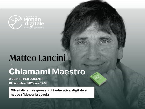 È proprio da questa consapevolezza che nasce il webinar “Chiamami Maestro”, un momento di confronto dedicato ai docenti che partecipano ai percorsi formativi della Fondazione Mondo Digitale. Un’occasione per riflettere sul ruolo sociale dell’insegnante oggi: non semplice trasmettitore di saperi, ma adulto di riferimento, capace di dare senso, porre domande, educare all’uso critico delle tecnologie e dell’intelligenza artificiale.