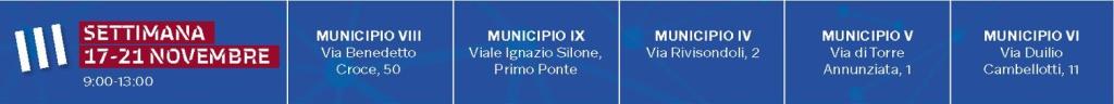 Il “mese della facilitazione digitale” è un’iniziativa che coinvolge i Municipi di Roma Capitale per un’assistenza e formazione digitale dedicata ai cittadini per tutto novembre. I facilitatori digitali, coordinati dalla Fondazione Mondo Digitale, sono presenti dal lunedì al venerdì, dalle ore 9 alle 13, in cinque municipi a settimana.
