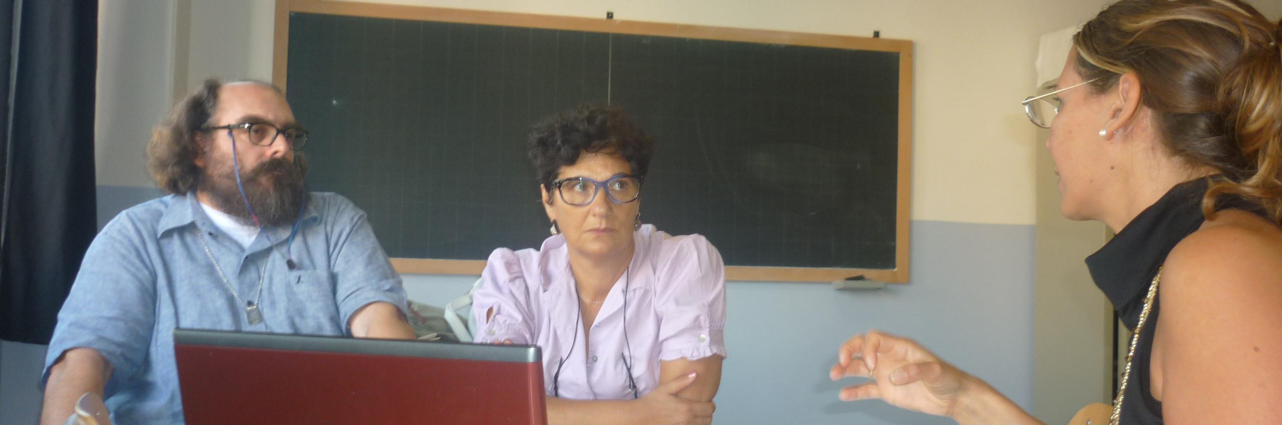 Nell’immagine alcuni ragazzi che hanno aiutato a rimettere in ordine l’aula di informatica prima dell’inizio del workshop con i docenti, tenuto da Ana Lain e Cecilia Stajano.