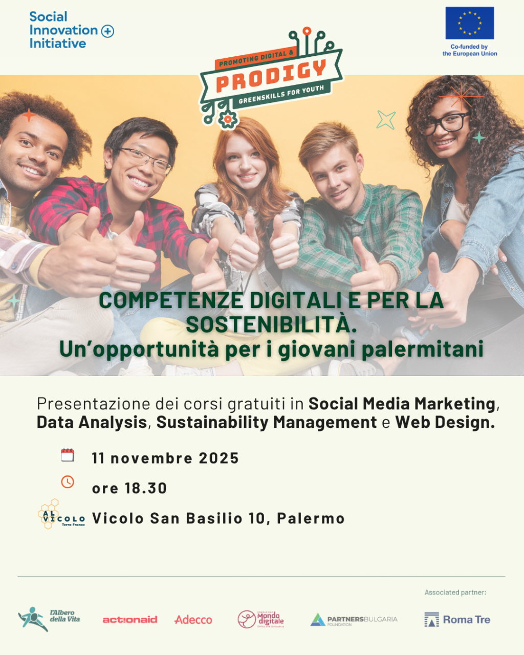 L'appuntamento è l'occasione per presentare il progetto europeo PRODIGY – PROmoting Digital and Green Skills for Youth. Finanziato nell’ambito di ESF+ Social Innovation+, PRODIGY è un programma innovativo che punta alla formazione e qualificazione dei giovani tra 15 e 29 anni che non studiano e non lavorano.