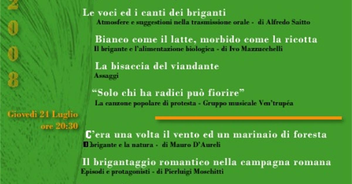 A luglio e a settembre la campagna la propone alcune serate “a tema alimentare” aperte a tutti i cittadini romani. Quest’anno le serate propongono la “storia bandita”, nelle campagne di fine ottocento, per scoprirne ingredienti e sapori. Il prossimo appuntamento con “Furono detti briganti” è fissato per giovedì, 24 luglio, alle 20.30, presso la sede dei Centri di Servizio per il Volontariato del Lazio Cesv e Spes (Roma, via dei Mille 6).