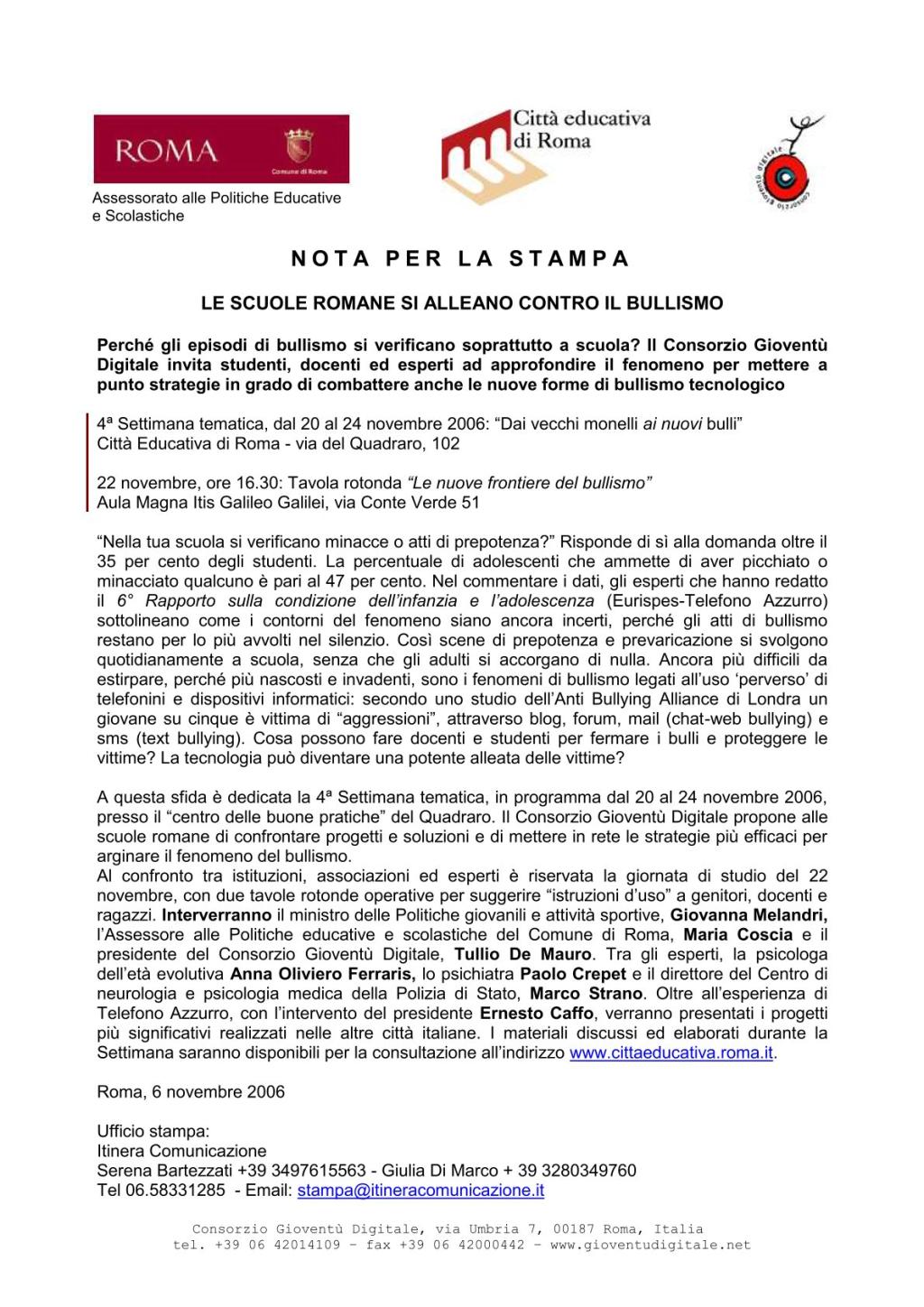 Nel 2006, molto prima che si parlasse diffusamente di cyberbullismo e violenza online, la Fondazione Mondo Digitale, allora ancora Consorzio Gioventù Digitale, dedicava una settimana tematica a un fenomeno allora ancora sommerso, ma già profondamente trasformato dalle tecnologie digitali.