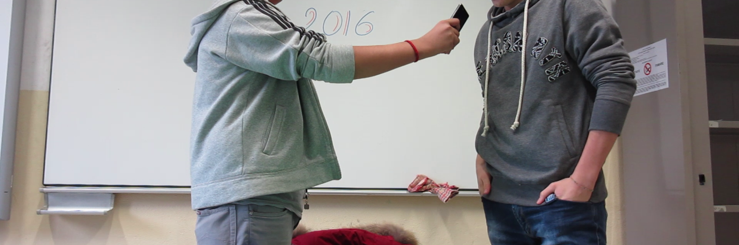 Nel video un frammento del lavoro di documentazione che sta realizzando la classe, che si è organizzata come una piccola redazione giornalistica. Sarmad Sohail si cimenta come conduttore. L'intervista è alla sua compagna di classe Jenni. Tutto si svolge in un clima di grande simpatia e serenità.