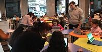 I tutor del laboratorio STEAM, le ragazze e i ragazzi dell'IIS Falcone-Righi di Corsico (Milano), coordinati da Paola Pupilli in un originale percorso di alternanza scuola-lavoro, si sono rivelati strategici nel seguire e motivare i piccoli programmatori, che provengono da aree di disagio e difficoltà.