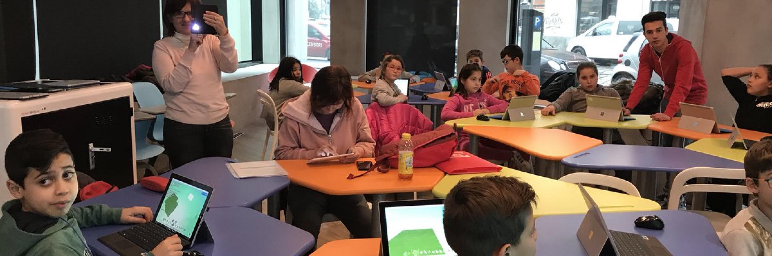 Per l'avvio del progetto "Inclusione sociale e lotta al disagio" (bando PON), la docente Silvia Conti ha accompagnato alla Microsoft House di Milano 24 bambine e bambini di due classi, quarte e quinte, dell'Istituto comprensivo 1 Darfo B.T di Brescia, coordinato dal dirigente scolastico Antonino Floridia [vedi la notizia Riparte Nuvola Rosa].