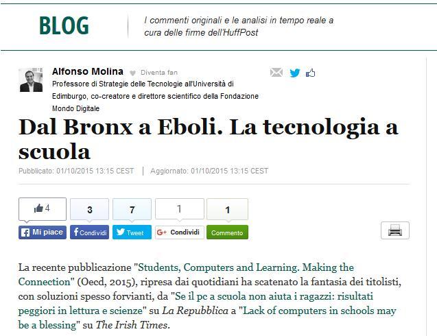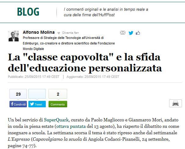 Sono dedicati alla scuola gli ultimi due articoli postati sul blog che Alfonso Molina firma sull’edizione italiana de The Huffington Post.