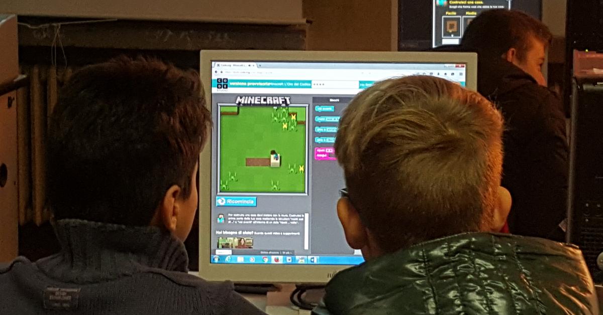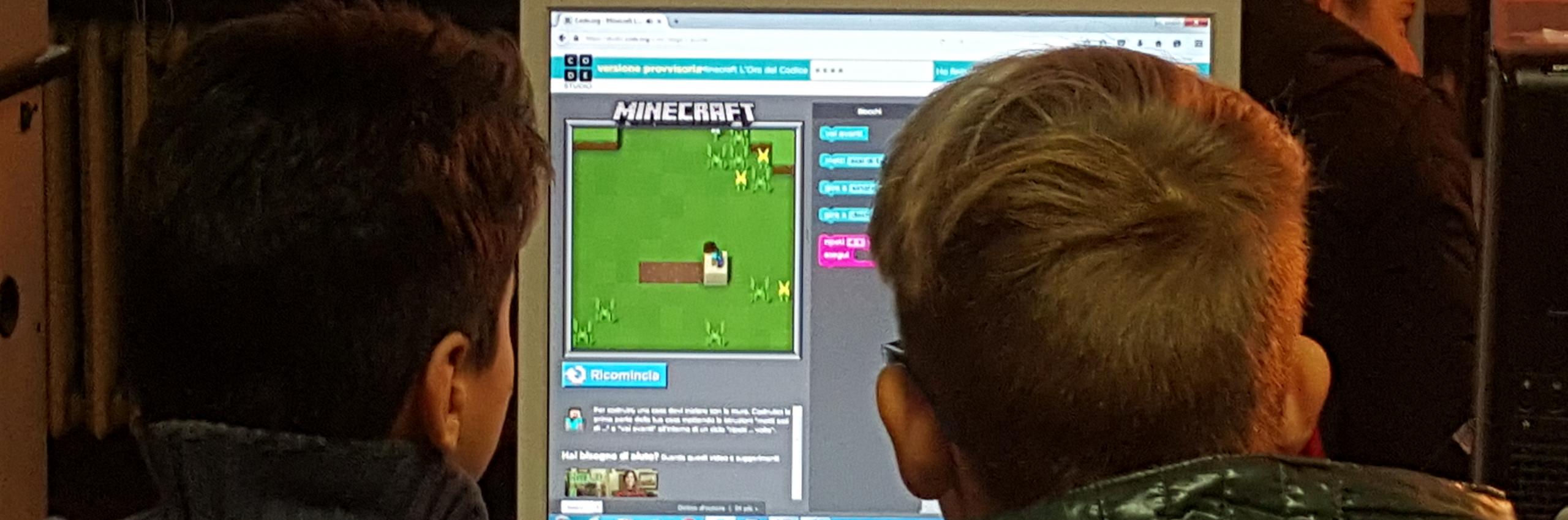 Piccoli e grandi hanno cominciato a programmare con il caratteristico codice a blocchi di Minecraft, il videogioco appassionante che aiuta a sviluppare competenze logiche e capacità di risolvere problemi in modo creativo e divertente. Gli studenti più esperti hanno svolto il ruolo di tutor e coach, coinvolgendo tutti nelle attività di coding.