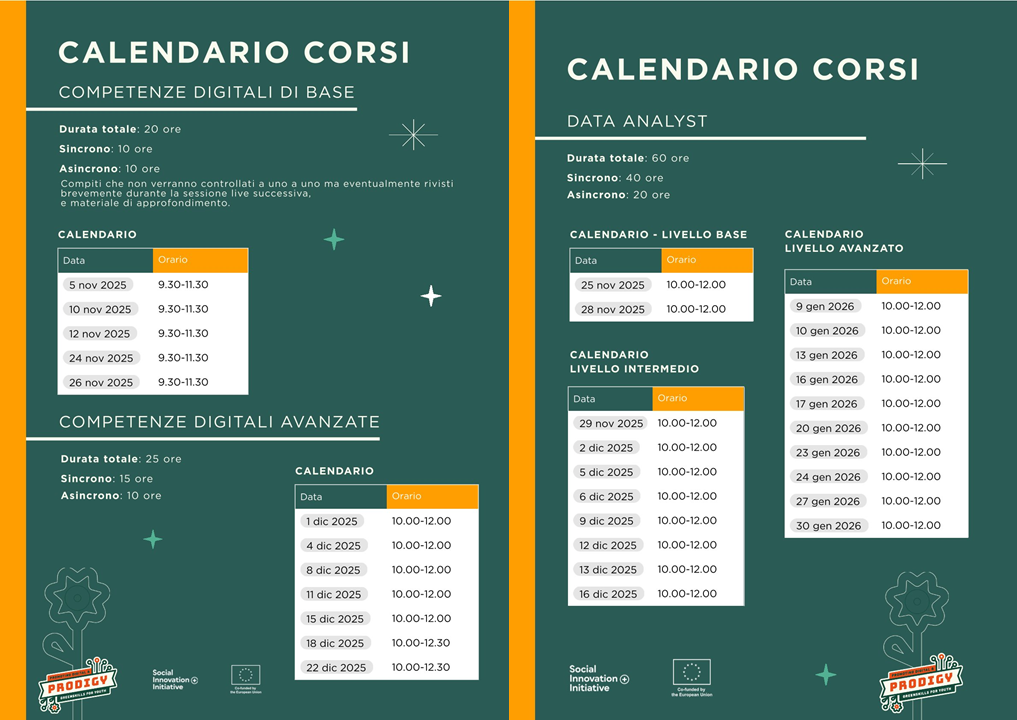 - Competenze digitali di base: 5, 10, 12, 24, 26 novembre 2025