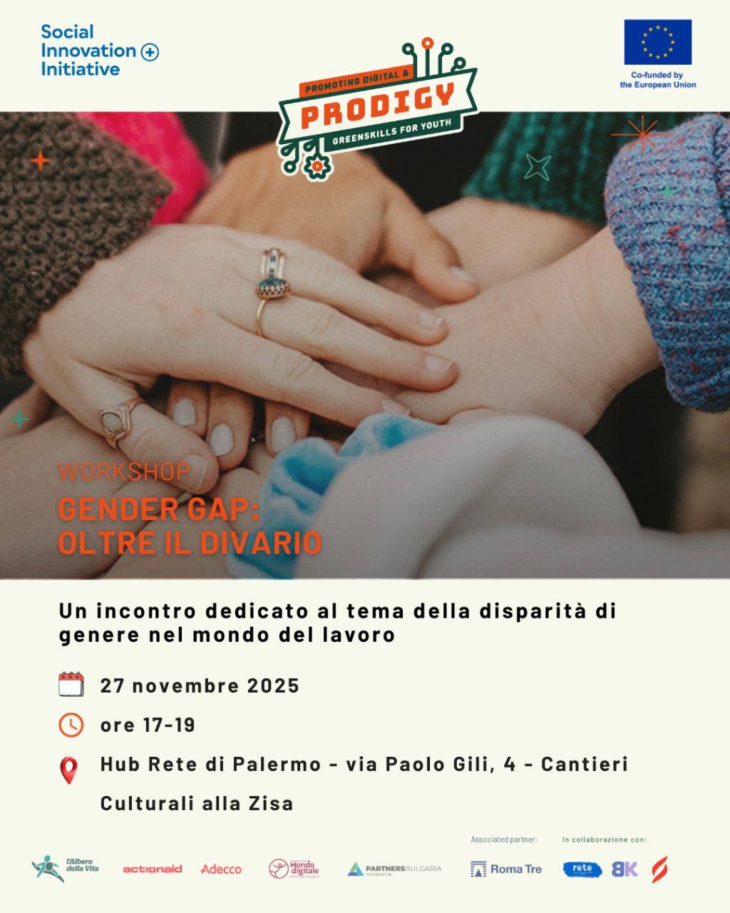 Sostenere i giovani nella transizione tra scuola, formazione e lavoro è una sfida che a Palermo si gioca ogni giorno nei quartieri e nei luoghi di comunità. Proprio per questo il workshop del 27 novembre ai Cantieri culturali alla Zisa ha avuto un ruolo speciale: è stato un momento di ascolto diretto, confronto e costruzione condivisa attorno ai bisogni dei ragazzi e alle opportunità che il territorio può offrire [vedi la notizia Prodigy a Palermo].