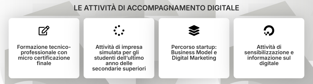 Il programma, finanziato dal Piano Nazionale di Ripresa e Resilienza (PNRR) - Piani Urbani Integrati, offre sul territorio percorsi formativi tecnico-professionali con micro-certificazione finale, attività di impresa simulata, moduli dedicati al Business Model e al Digital Marketing, e iniziative di accompagnamento digitale per cittadini, imprenditori e aspiranti imprenditori.