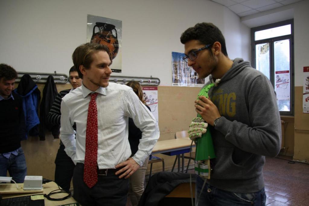 Nelle foto Gabriele Caiazzo, studente dell'IIS Carlo e Nello Rosselli di Aprilia e ideatore di “Handy hand”, alla RomeCup 2015.