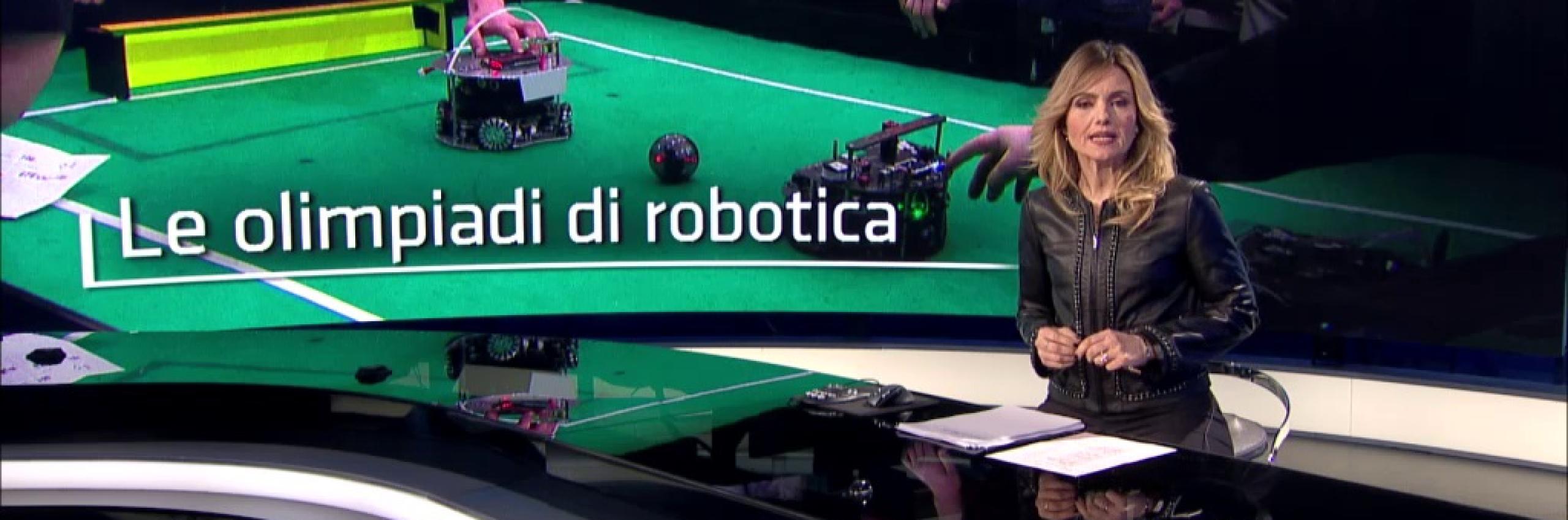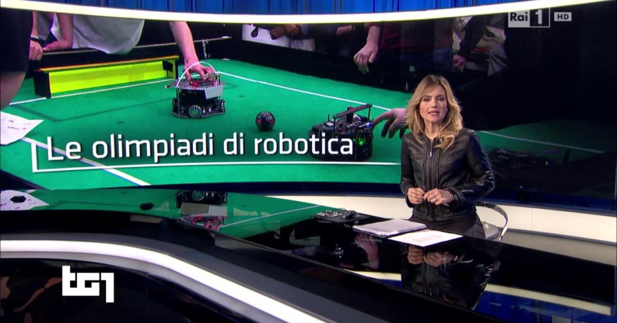 La troupe del tg1, guidata dalla giornalista Roberta Badaloni, ieri è stata al Palalevante e al Croce-Aleramo per scoprire e raccontare cosa succede alla decima edizione della RomeCup e alla prima edizione delle Olimpiadi di Robotica, promosse dal Miur.