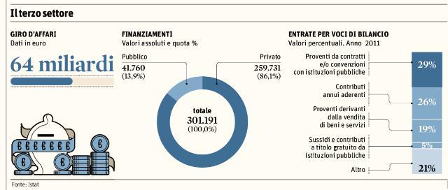 Giro d'affari da 64 miliardi per il terzo settore in Italia