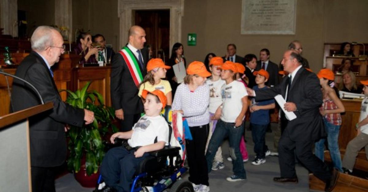 A nessuno dei presenti in Campidoglio il 9 ottobre scorso, per la premiazione del concorso internazionale GJC, è sfuggita la carrozzina elettrica di Alessandro che schizzava veloce verso Tullio De Mauro quando ha annunciato il nome del progetto vincitore “Sono a casa ma sono a scuola”. Dietro i compagni di classe, la quarta A della scuola elementare Iqbal Masih di Roma, con i capellini colorati. Sono bambini di 9 anni ancora ignari di burocrazia e politica. Hanno circondato Alessandro e il maestro Luca Vitali, per ritirare il premio insieme, perché sanno che in qualche modo è un riconoscimento “corale”, a tutte le persone che hanno reso possibile il progetto.
