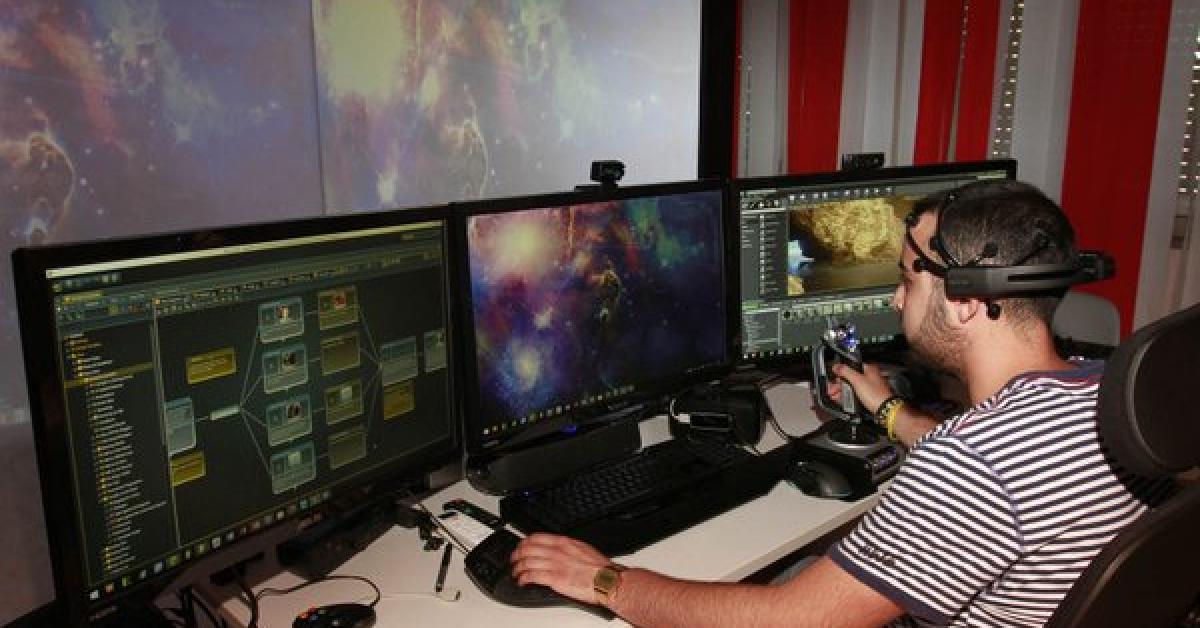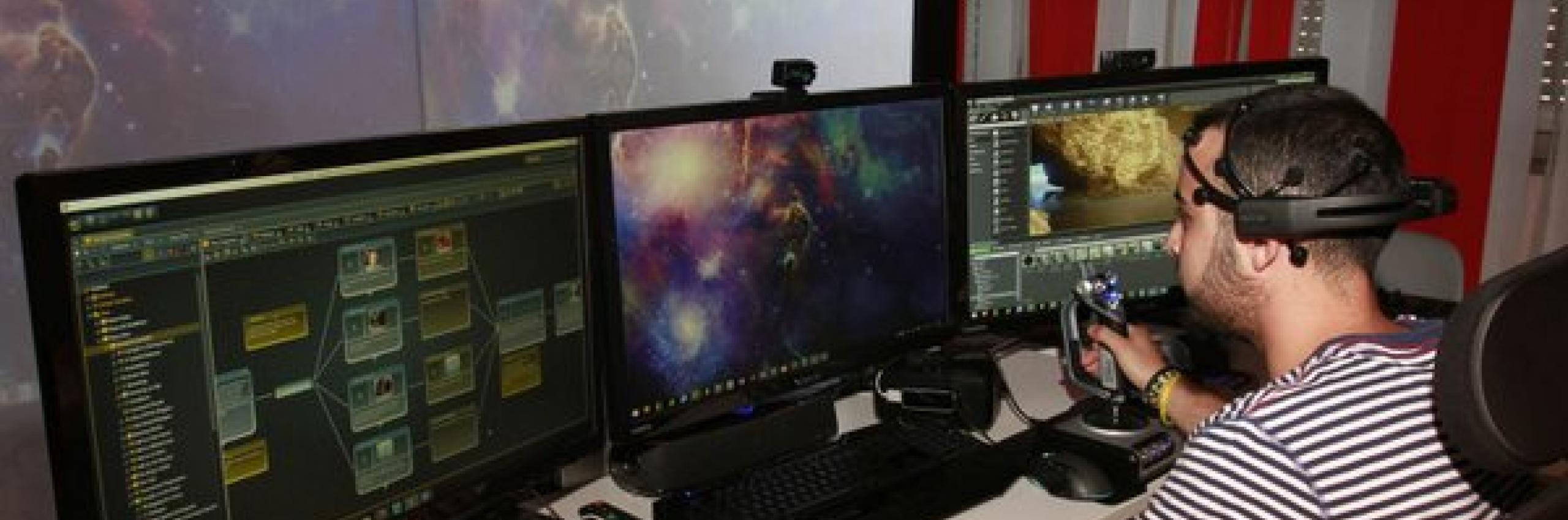 Nell'Immersive Lab il coach Domenico Zungri guida i giovanissimi alunni dell’IC Parco degli Acquedotti di Roma nell’esplorazione degli strumenti immersivi e della realtà virtuale.