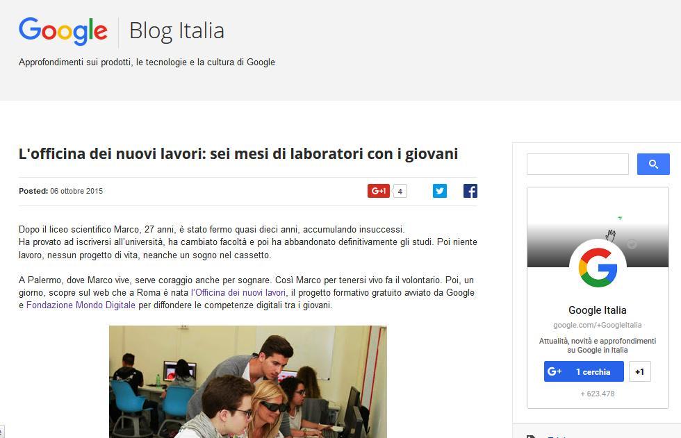 Su Google Blog Italia Mirta Michilli, direttore generale della Fondazione Mondo Digitale, ha scelto di raccontare una sola storia per tutte, quella di Marco, 27 anni, di Palermo.