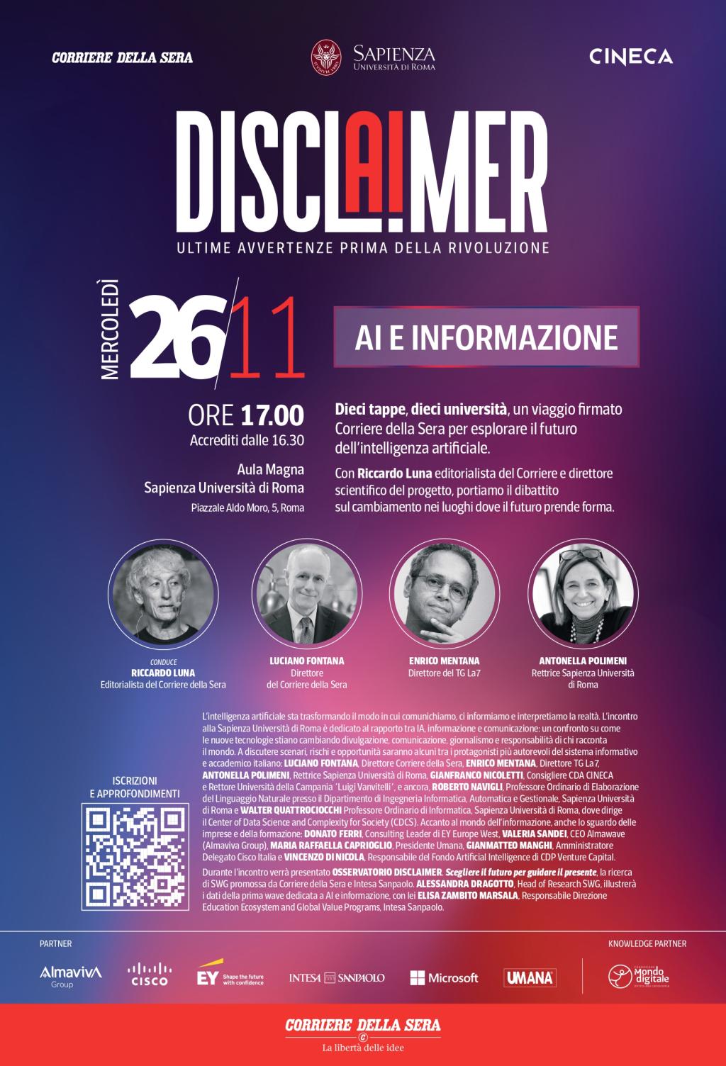 Sempre sul fronte dell'empowerment, a Milano si tiene l’incontro su Intelligenze al femminile nell’IA, dedicato a competenze digitali avanzate per imprenditrici e professioniste (25 novembre) [vedi la notizia Nuove competenze per imprenditrici e professioniste].