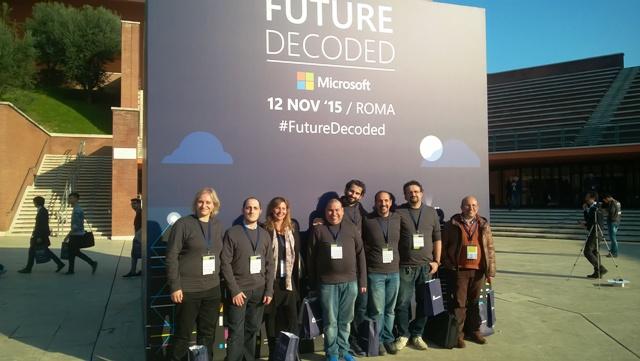Nella foto Ana Lain, coordinatrice della rete di scuole del programma Meet no Neet, con i professionisti della community DotNetCode.it all'evento Future Decoded (vedi la news Satya Nadella a Roma].