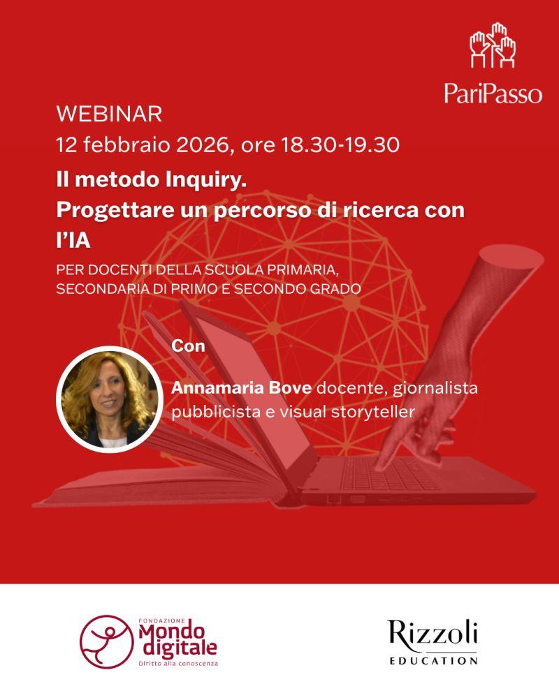 Prosegue oggi, giovedì 12 febbraio alle ore 18.30, il percorso di formazione sulla didattica aumentata promosso dalla Fondazione Mondo Digitale ETS nell’ambito di PariPasso, il progetto di Rizzoli Education dedicato alla cultura dell’inclusione.