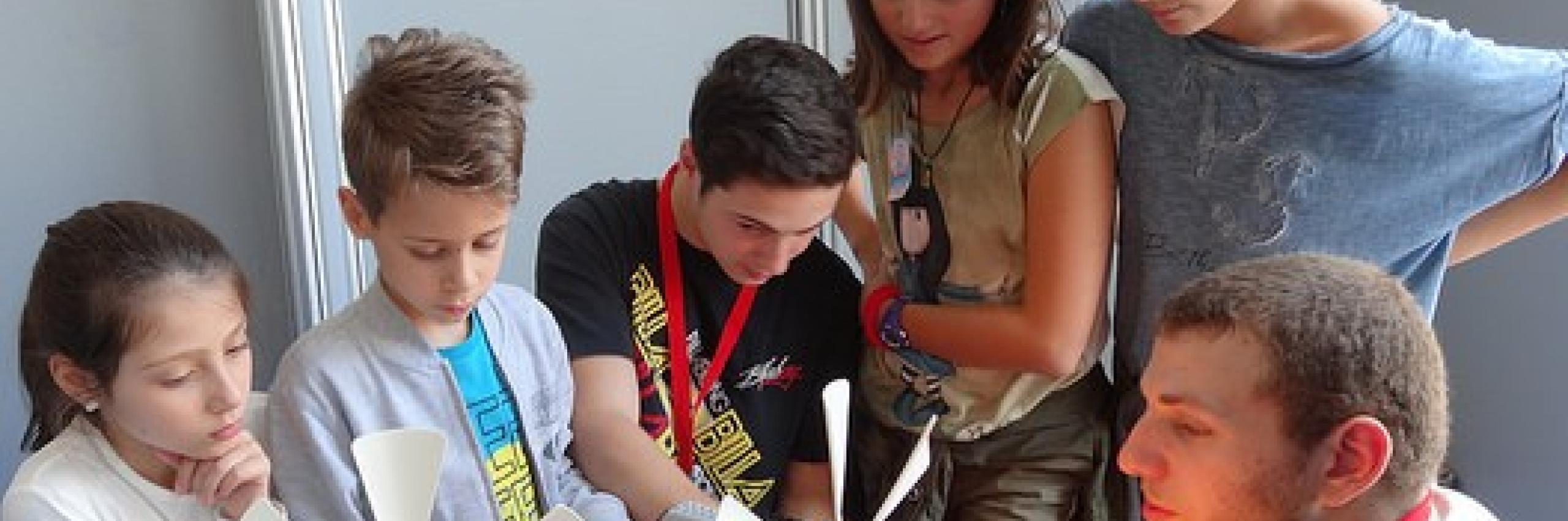 Oggi sono al lavoro per la prima volta nel Robotic Center bambine e bambini della quinta classe delle scuola primaria dell’Istituto comprensivo Piazza De Cupis.