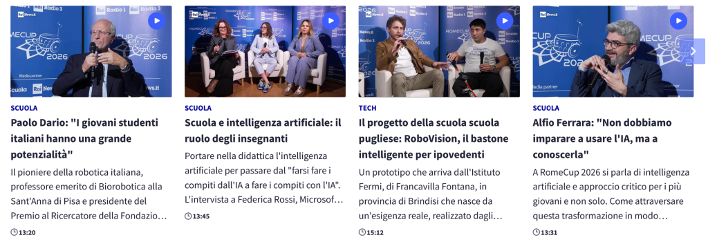 Anche quest’anno la testata segue la manifestazione con una maratona digitale dalla postazione dedicata, raccogliendo interviste, video e racconti dei protagonisti: studenti, ricercatori, docenti, rappresentanti delle istituzioni, università, centri di ricerca e aziende. Un corner editoriale che permette di attraversare i diversi linguaggi della RomeCup, dalle gare di robotica ai laboratori, dai progetti con le imprese ai momenti di confronto pubblico sulle grandi trasformazioni tecnologiche.