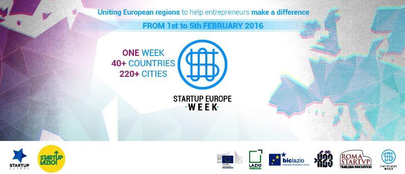 Dall’1 al 5 febbraio 2016, più di 200 città celebrano l’imprenditorialità europea con workshop, eventi motivazionali, sessioni informative e formative e eventi di networking con una duplice finalità: affrontare le tematiche cruciali per una startup e offrire una panoramica delle opportunità a disposizione a livello locale dai programmi di accelerazione alle opportunità finanziarie fino alle agevolazioni fiscali.
