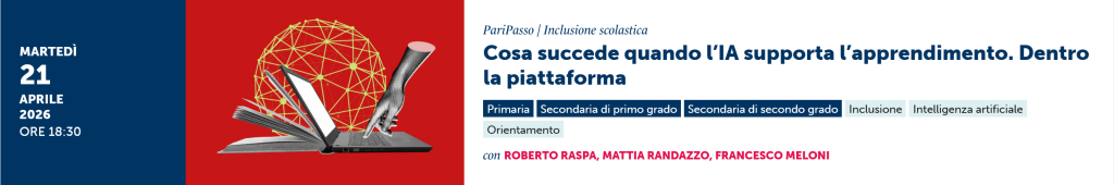 È possibile rivedere il primo incontro, Il compagno invisibile, dedicato al ruolo dell’intelligenza artificiale nella didattica inclusiva.