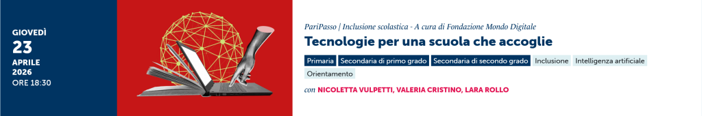 Non è una questione che riguarda solo alcuni studenti. È il modo in cui oggi si costruisce una didattica che funziona. Prosegue il percorso “Tecnologie che includono. Benessere, orientamento e qualità educativa”, promosso da Fondazione Mondo Digitale nell’ambito del programma Rizzoli Education PariPasso, con gli ultimi due webinar in programma nei prossimi giorni.