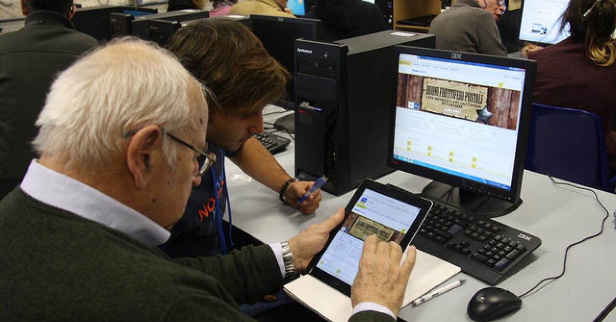 Dopo 30 ore trascorse al fianco dei giovani tutor per acquisire familiarità con le nuove tecnologie, anche gli over 65 che hanno seguito i corsi di alfabetizzazione digitale in 30 città italiane sono pronti per formare “alla pari” altri over 65. Ogni istituto mette a disposizione alcune ore di consulenza, distribuite in quattro pomeriggi: nella scuola di quartiere i cittadini trovano un aiuto concreto per risolvere problemi pratici sul proprio dispositivo, come scaricare l’app Ufficio Postale o usare QRCode con BancoPosta, e “pillole digitali”, mini corsi per piccoli gruppi su temi specifici (accesso all’informazione, servizi per la salute, e-government, pagamenti elettronici ecc.) [vedi la news Tutti in rete con i nonni].