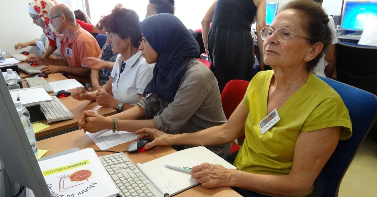 Nonni su Internet alle Poste nasce per aiutare le persone più anziane a navigare nel web e familiarizzare con le moderne tecnologie di comunicazione. Poste Italiane ha scelto il modello di Nonni su Internet e con Fondazione Mondo Digitale promuove il progetto pilota di alfabetizzazione digitale presso gli uffici postali [vedi la news "Nonni on line alle Poste"].