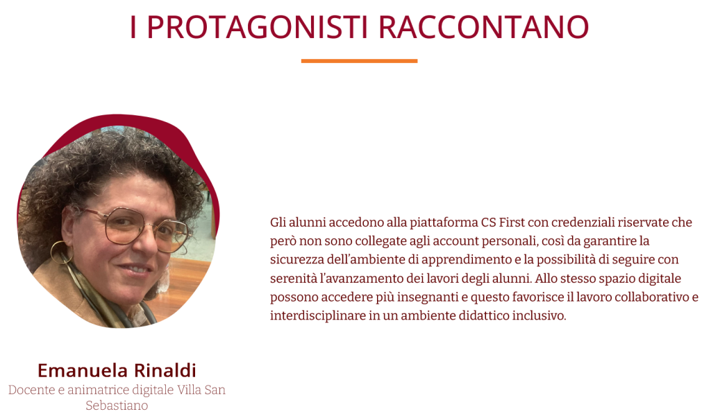 CS First, infatti, permette di integrare la didattica delle discipline curricolari con metodologie più efficaci per insegnare e apprendere nuovi linguaggi e non solo per “fare codice”. E, grazie alle particolari caratteristiche della piattaforma, aiutiamo anche gli insegnanti a costruire un ambiente di apprendimento collaborativo e inclusivo, attento a diverse tipologie di bisogni speciali o di fragilità temporanee.