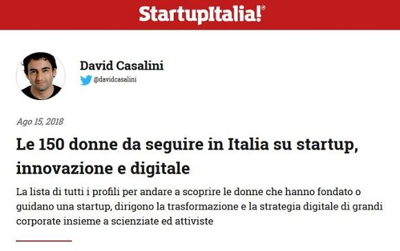 Il magazine dell'innovazione e delle startup italiane, StartupItalia!, ha aggiornato la lista delle donne "che hanno fondato o guidano una startup, dirigono la trasformazione e la strategia digitale di grandi corporate insieme a scienziate e attiviste". È una lista in progress, aperta a suggerimenti di nuovi nomi, da segnalare a unstoppablewomen@startupitalia.eu oppure sulla pagina Facebook.