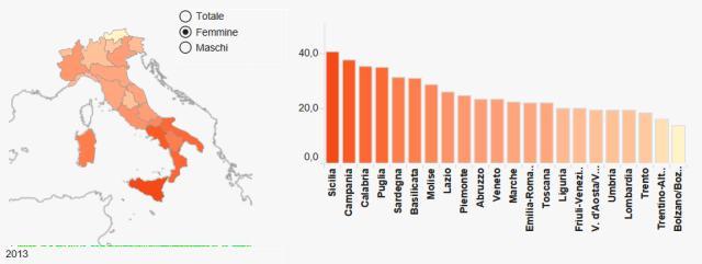 Le ragazze che non studiano e non lavorano (Istat, Noi Italia 2016]